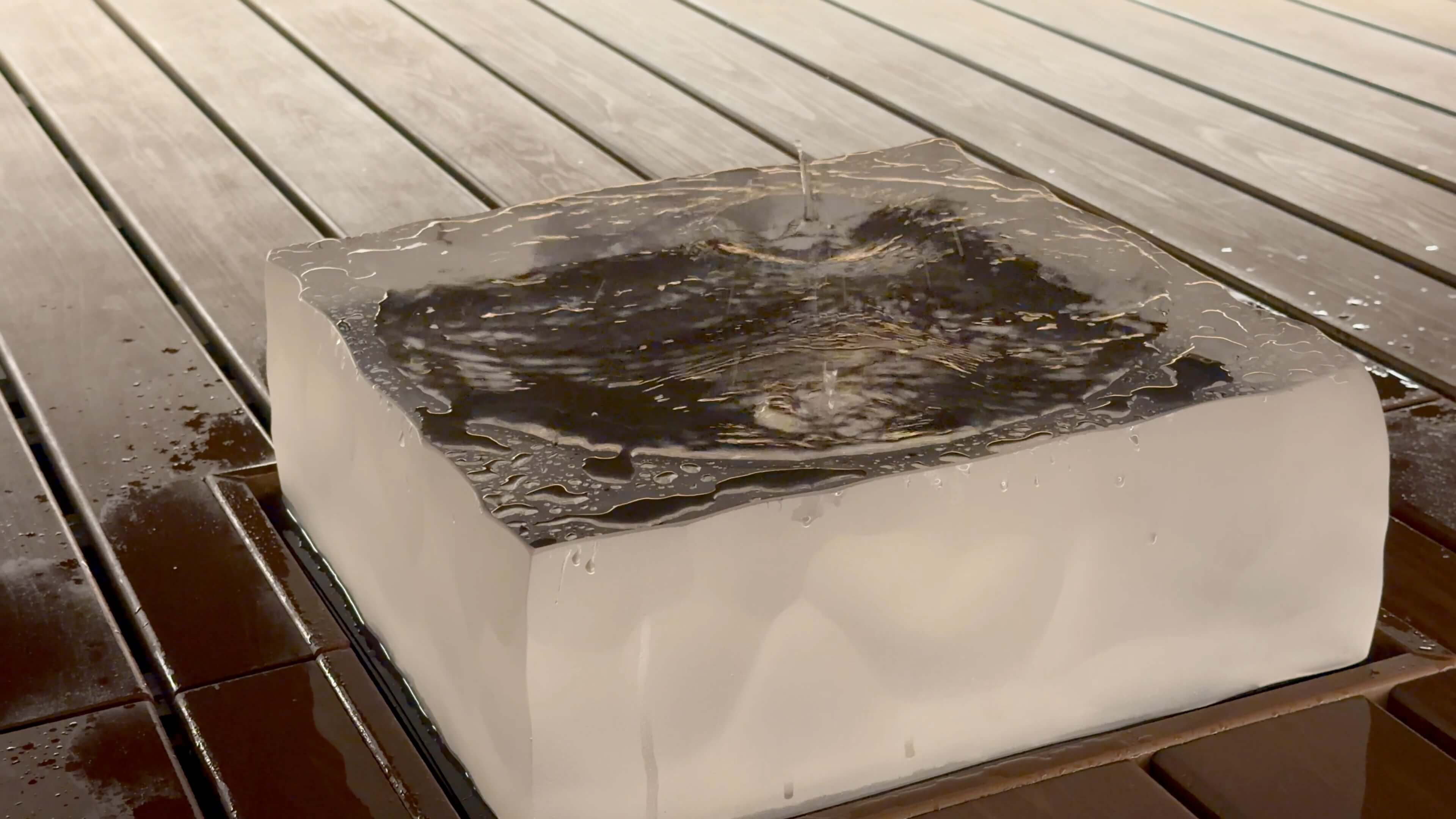 内部に仕込まれた照明の光が天井にうつり、美しい波紋の影となります。